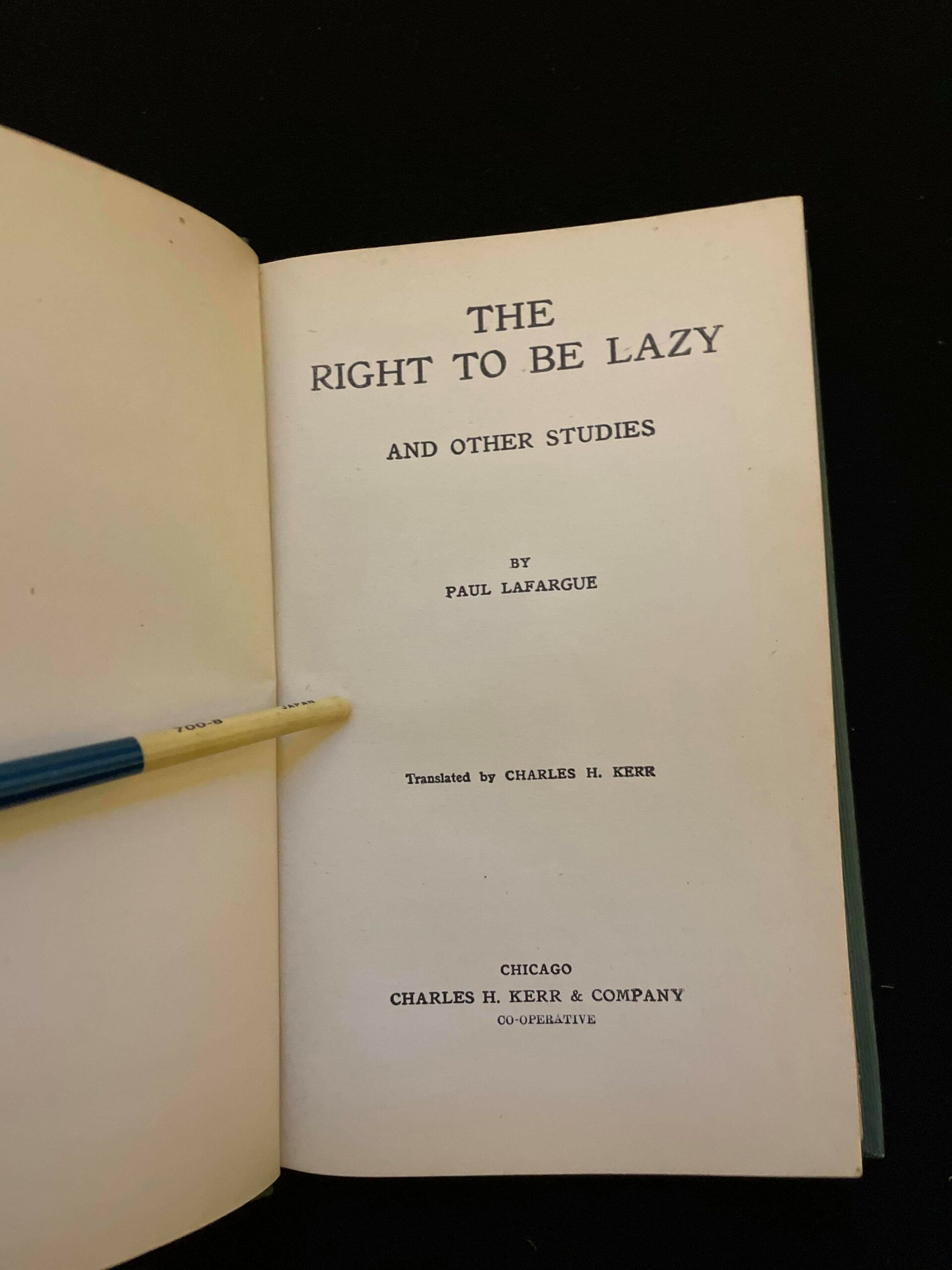 Right to Be Lazy and Other Studies by Paul Lafargue. Published in 1907, Chicago, Charles H. Kerr & Co.