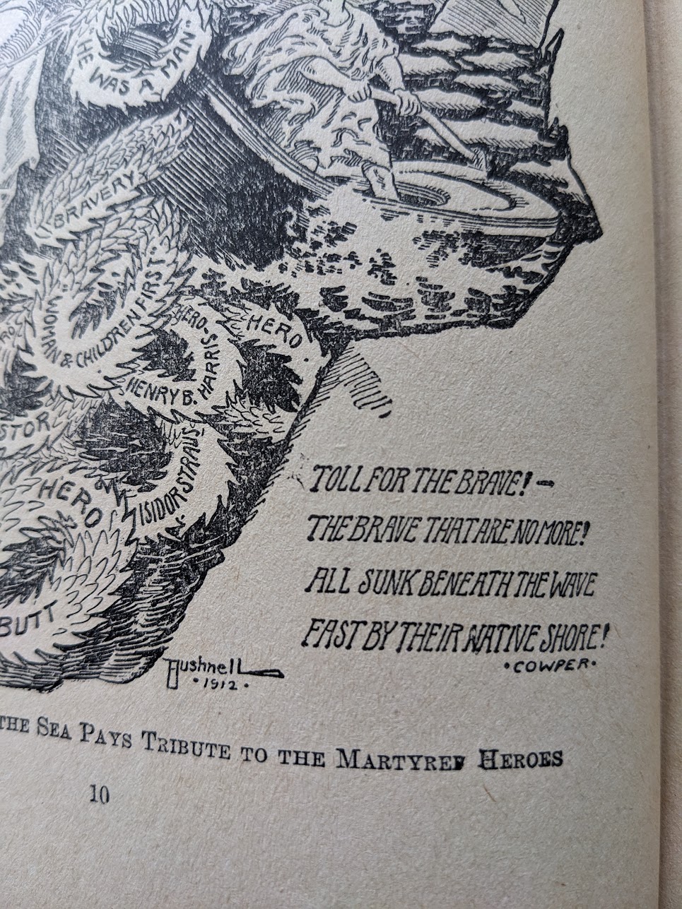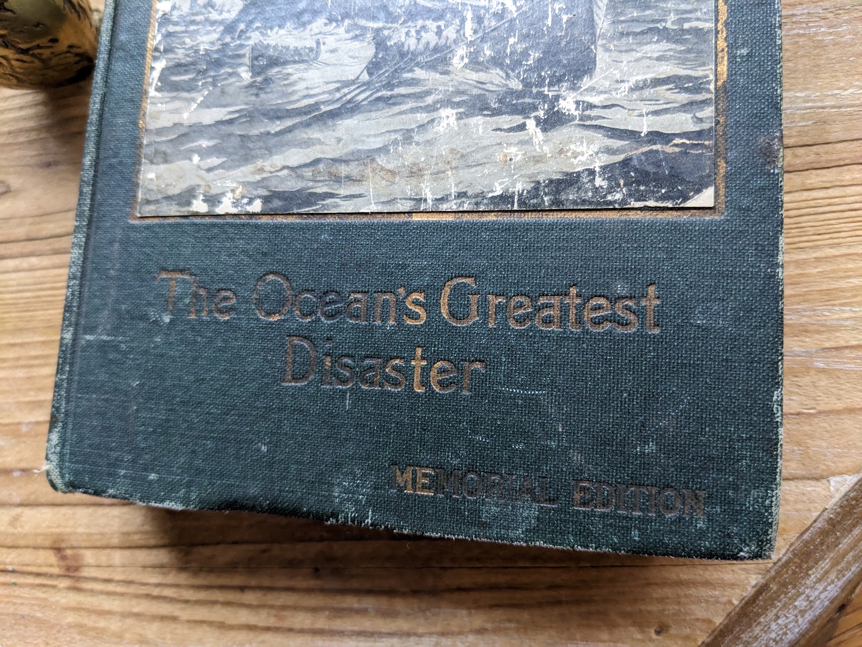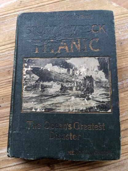 Dark green cloth binding with pictorial cover illustrations and photographs throughout. Illustrated. Scuffing along edges of covers, patchy surface excoriation and fading to gilt lettering on front cover. General wear to text block edges a previous owner’s name written on front pastedown and endpaper but other than that no other markings throughout entire book. Numerous variations of this title (along with several variant sub-titles) exist, but the Memorial Edition was first and so most sought after Titanic printing, and it wasn’t quite ready for publication when it was rushed to market. In a desperate bid to be the first book to capitalize on the tragedy, Nearer my God to Thee was printed just a few months after the disaster.