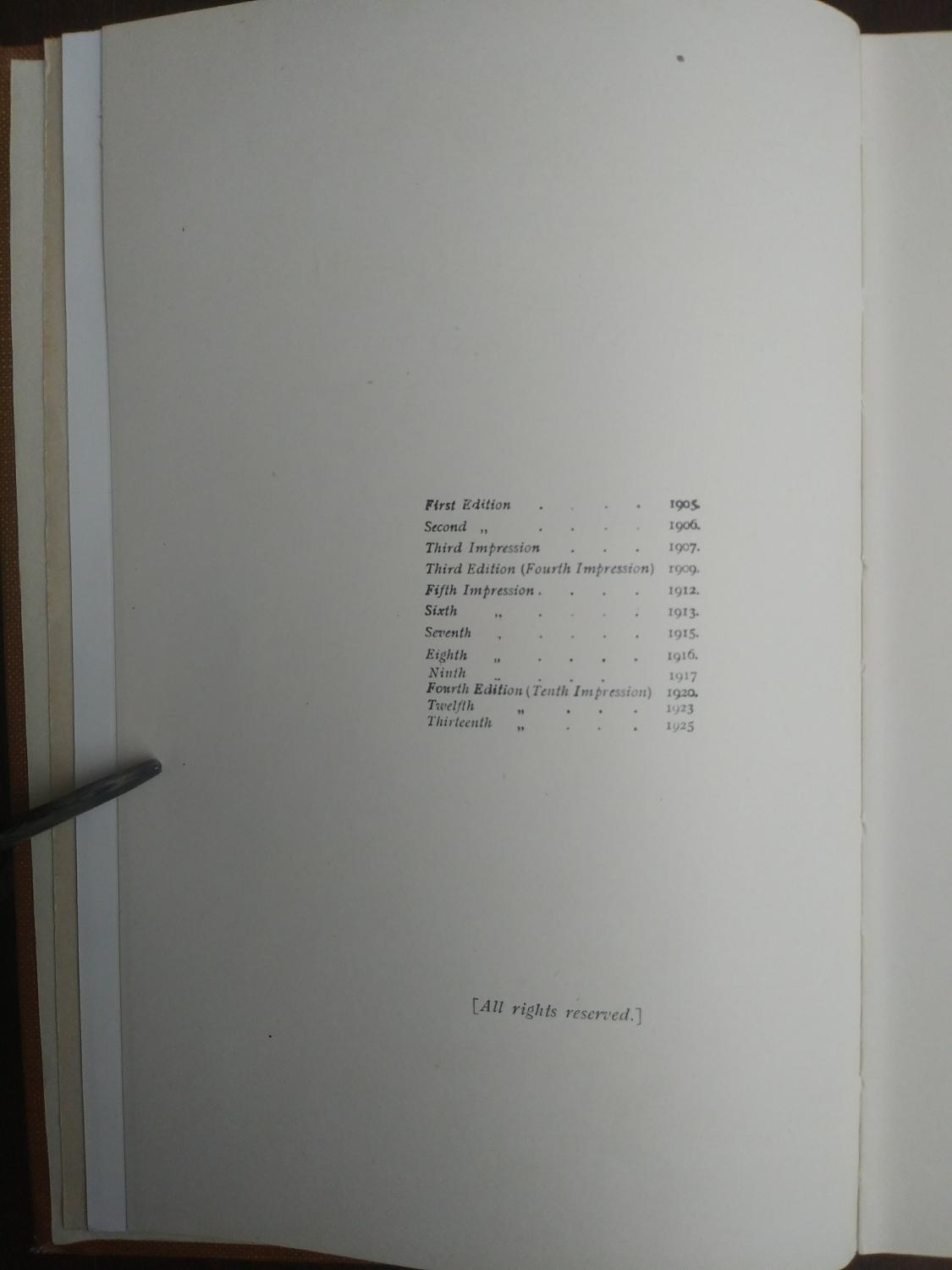 Published in 1925 by T. Fisher Unwin Ltd, London. This is the thirteenth impression. (First published in 1905)