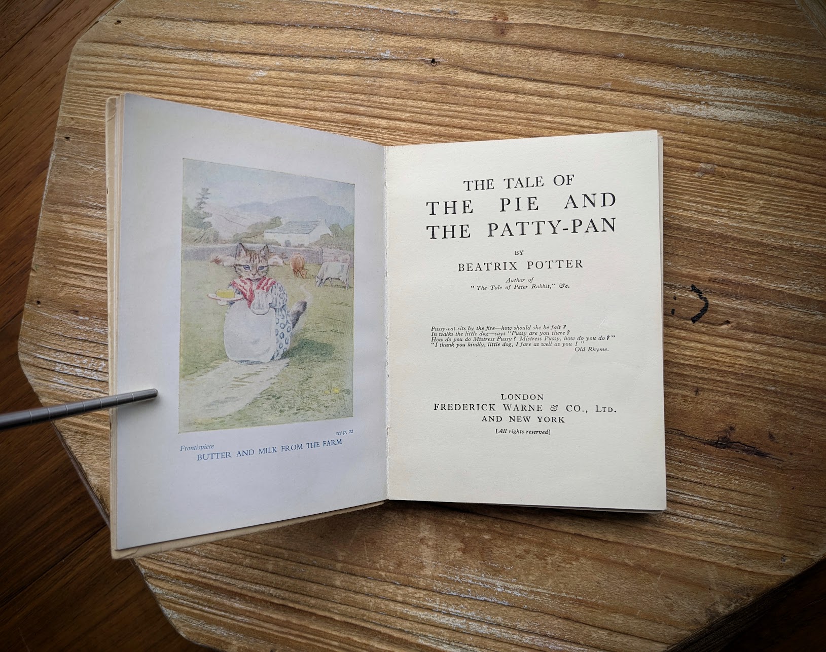 The Tale of The Pie and The Patty Pan by Beatrix Potter. Undated Scarce early edition. Published by Frederick Warne and Co, Ltd. UK. (Pre publisher number).
