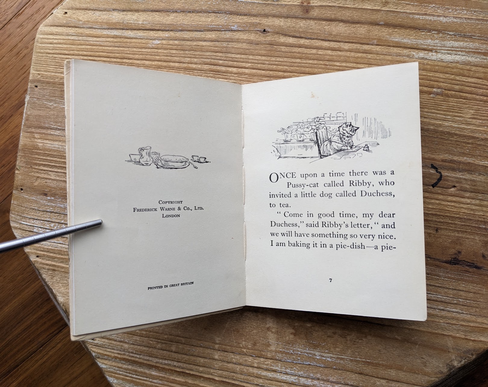 “Once upon a time there was a Pussy-cat called Ribby, who invited a little dog called Duchess, to tea…”
