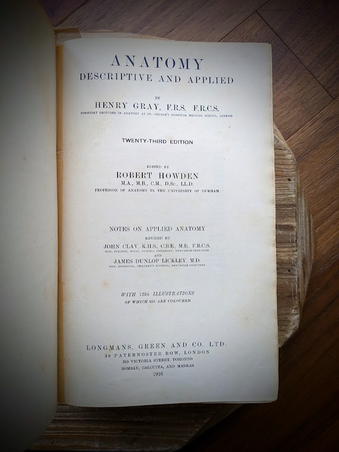 1926 Gray’s Anatomy – Descriptive and Applied by Henry Gray – Twenty-third Edition – Longmans, Green and Co. Ltd.