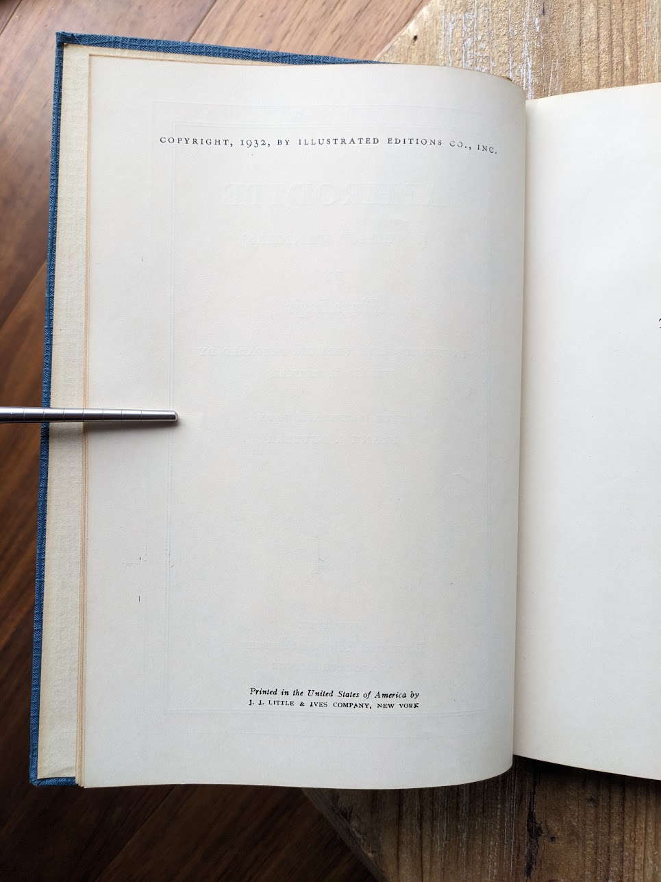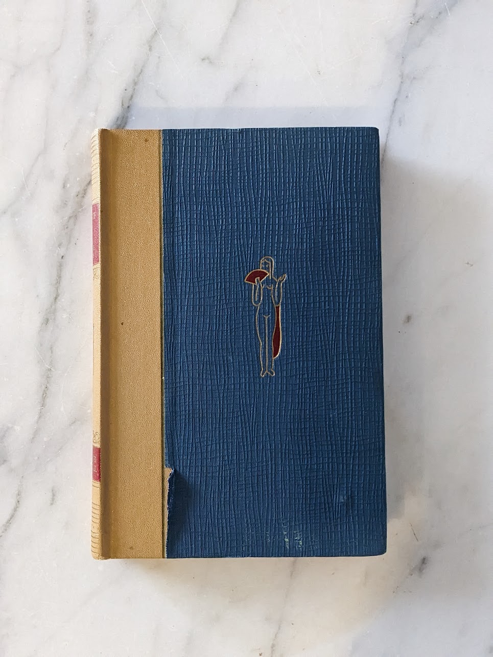 Tan cloth spine with gilt spine decoration, and with textured blue cloth boards with a gilt and red illustration with minimal shelf wear and without any fading. Overall Good condition with a slight tear in the blue cloth on front panel (see image up close in gallery area for a visual example of this). Frontispiece, illustrations. Nicely illustrated with line drawings by Frank J Buttera, famous South American artist.