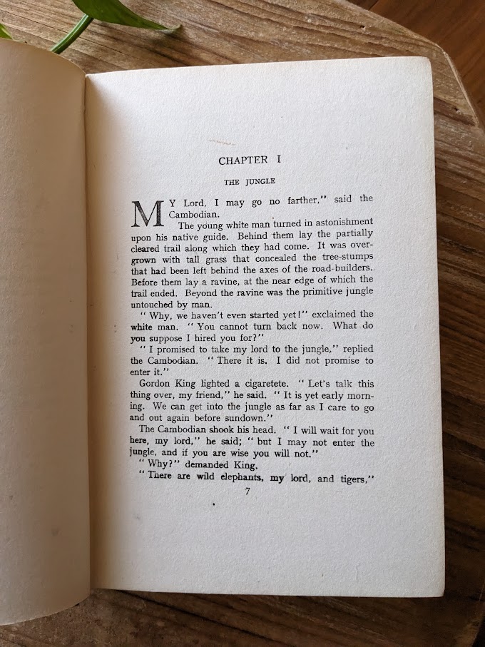 ? Synopsis (Goodreads): In far Cambodia, where the Khmer kings built their mighty temples and vanished from the earth with their millions of subjects hundreds of years ago, leaving no trace upon the written pages of history, are secrets yet undivulged to man, jungles that even natives never enter. Into such went Gordon King. There are drama, mystery, adventure, and love awaiting you between the covers of this book. It is fast-moving, spectacular, gripping, and once you start it, you will not want to lay it down until you have learned what fate awaits Gordon King and the Jungle Girl.