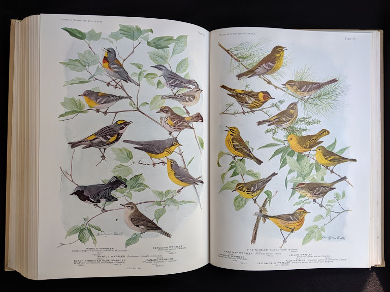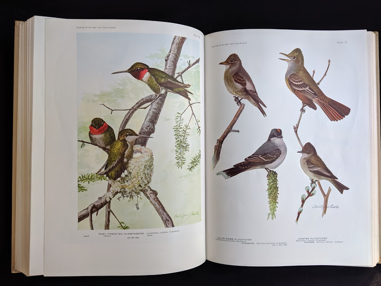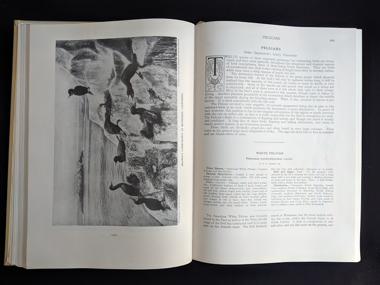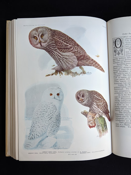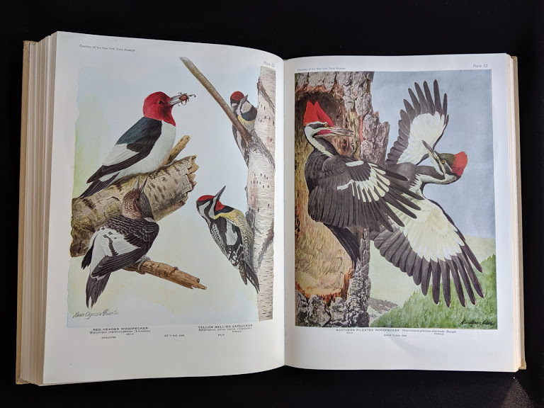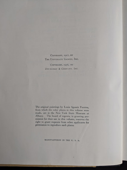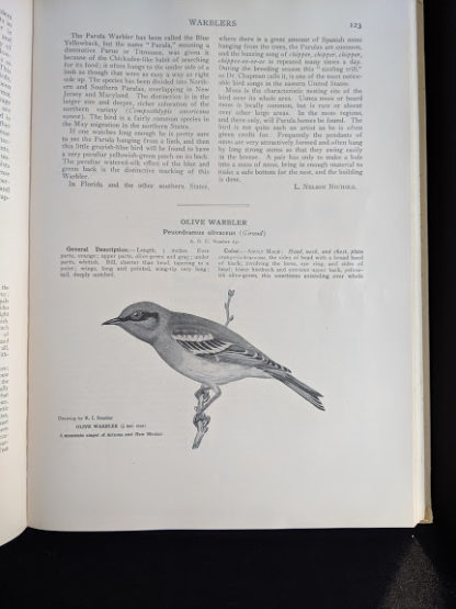 Large Edition Volume (21x 29 cm) with beautiful colour full-page illustrations. The colour prints are based on paintings by Louis Fuertes, originals in New York State Museum. Overall condition is very good. Two-toned green binding with gilt title on spine. All 289 pages are secure and there is no hinge cracking.