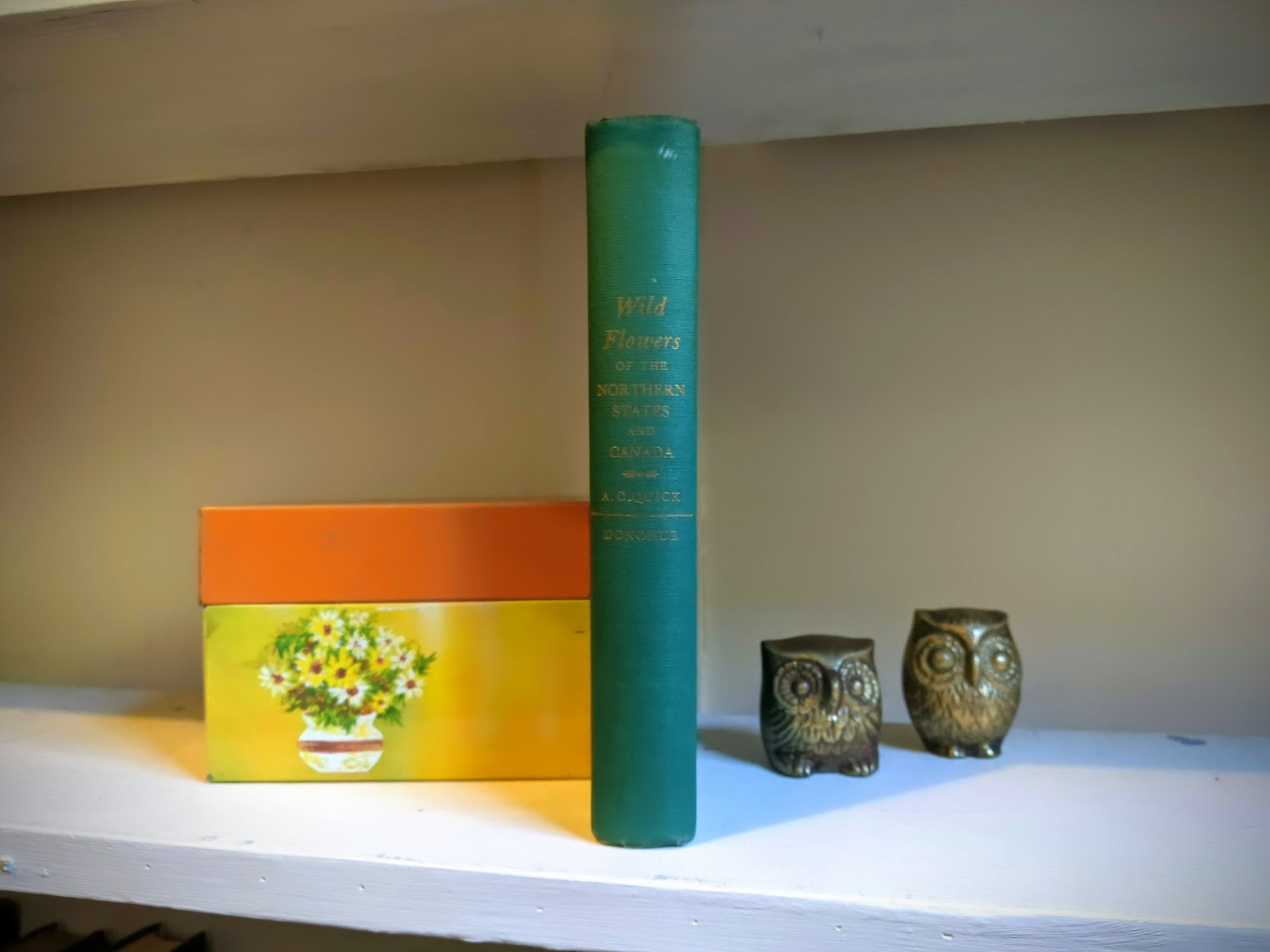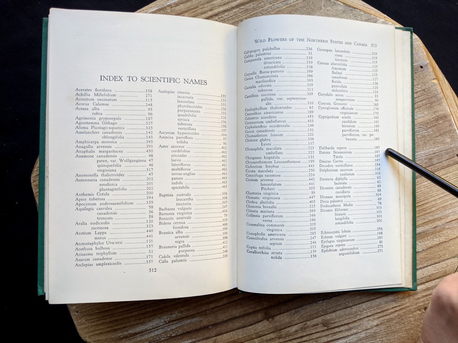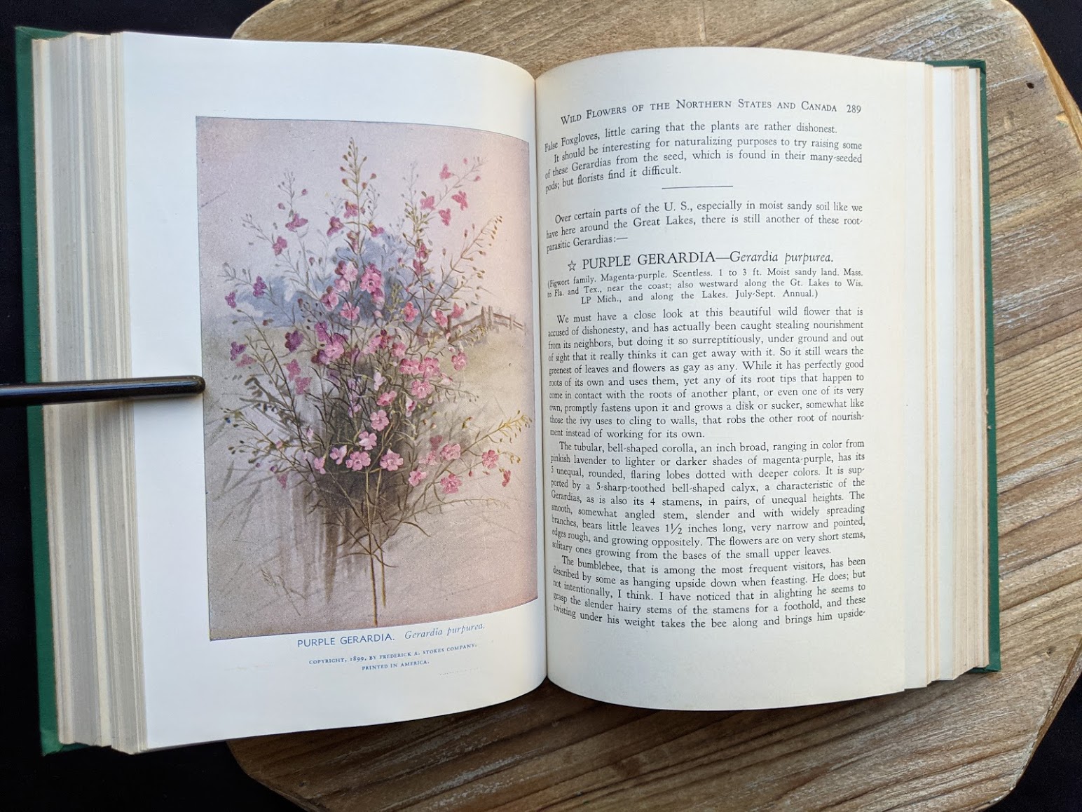 Eight Color Plates, A non-technical illustrated work on wild flowers covering some 600 species with all related subjects. Life Cycles, habits, traits, haunts, range, frequency, and pollination of wild Flowers are explained. There is a full index in back for both Common Names and Scientific Names. 518 pages. Book is in beautiful condition, all pages clean and secure to hinge, green cloth boards are still vibrant. Gold gilt title on front panel and spine.