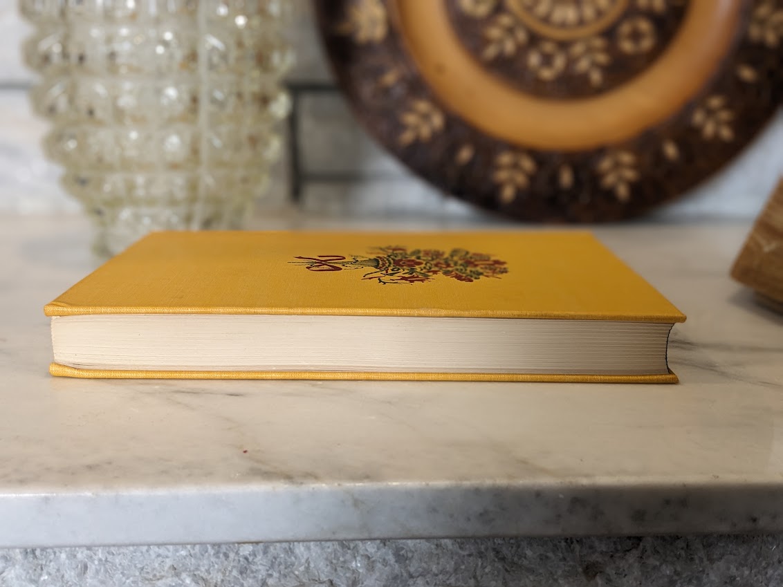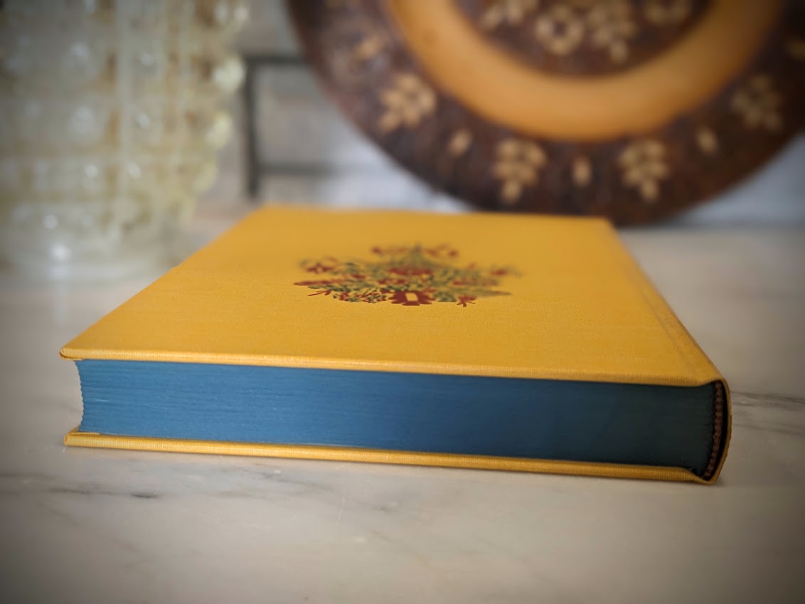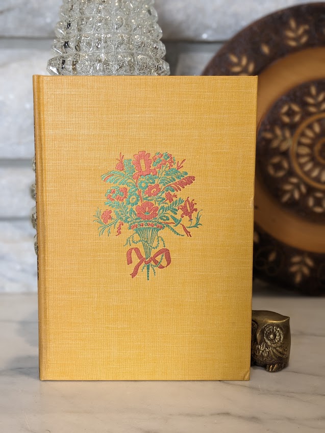 Tight copy, all pages mark free and edges of text block are sharp. Near fine copy with charming Yellow cloth boards with, green and red floral design front panel and spine. Gray slipcase showing scant wear.