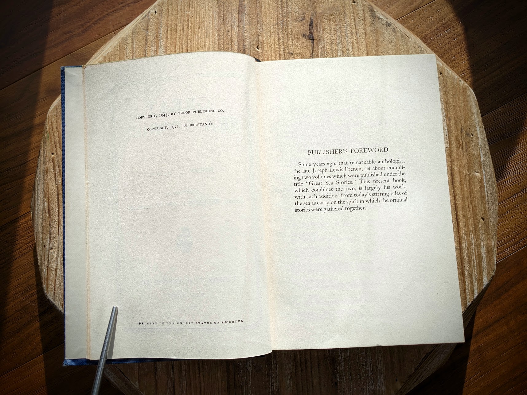 Great Sea Stories Edited by Joseph L. French. Published in 1943 by Tudor publishing Co.