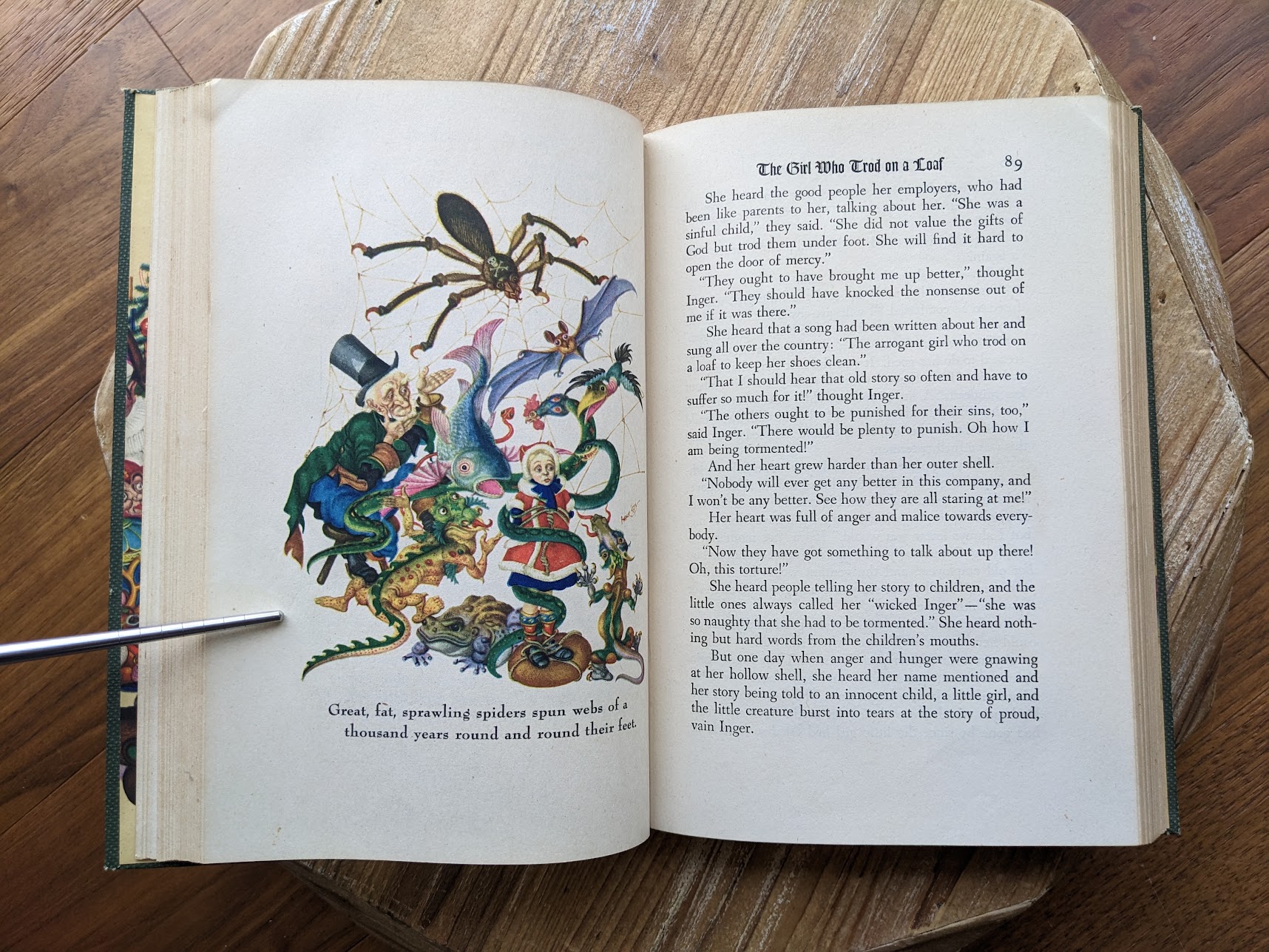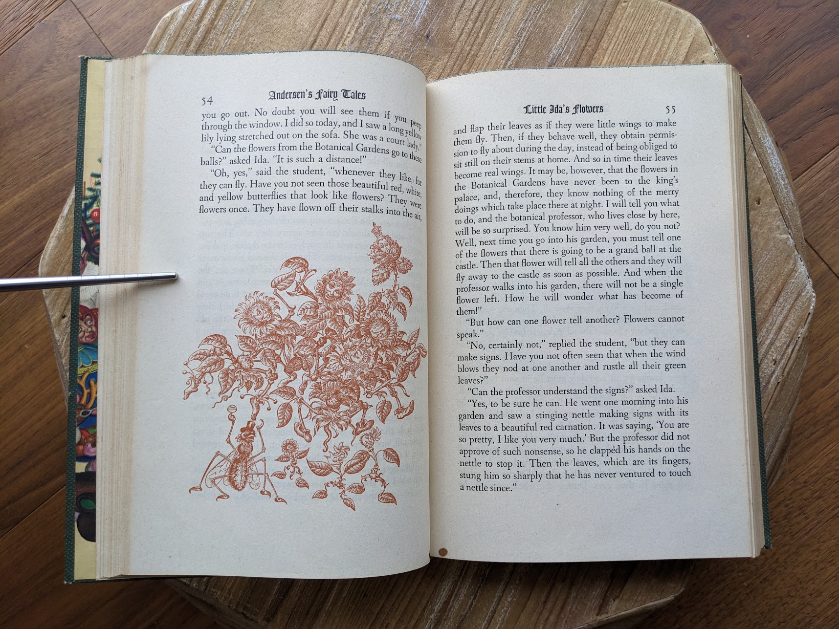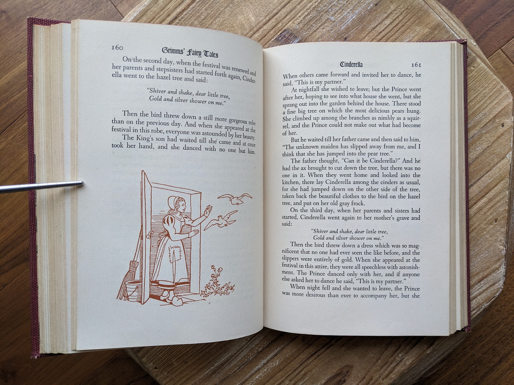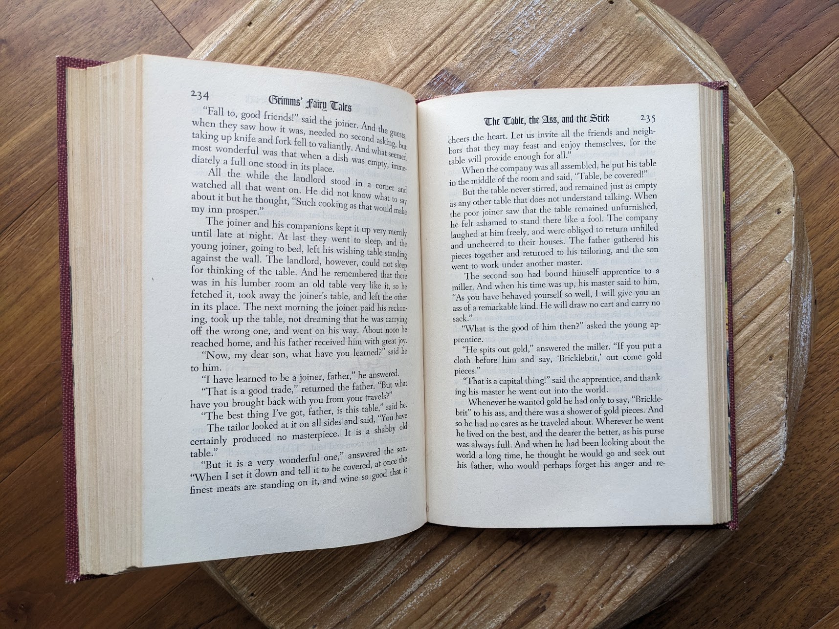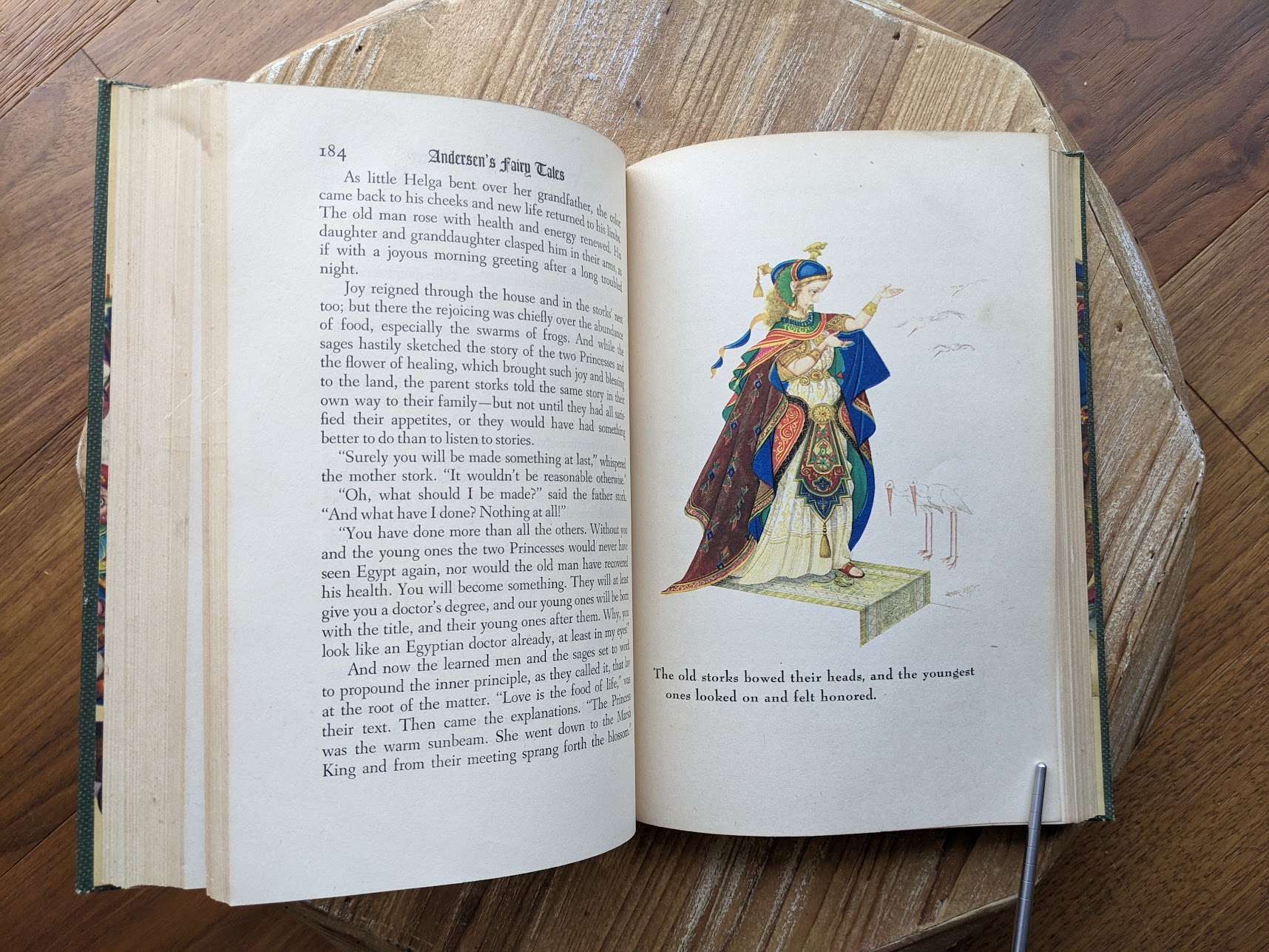 Anderson’s Fairy Tales has a slipcase, Grimms’ Fairy Tales does not. Other than the annotation of previous owner written on front endpaper of each book, all the pages are mark free and clean and tight to the hinge.
