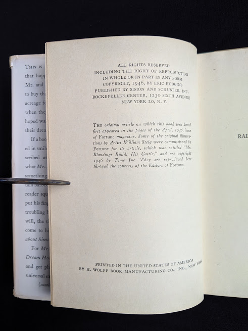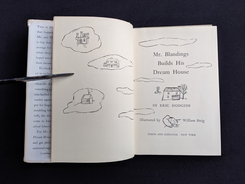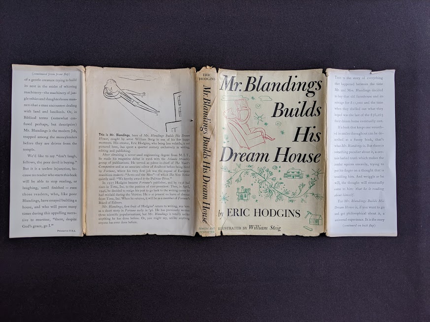 Mr. Blandings Builds His Dream House by Eric Hodgins. Illustrated by William Steig. 1946 First Edition, 1st Printing. Published in New York: Simon & Schuster.