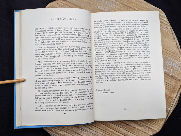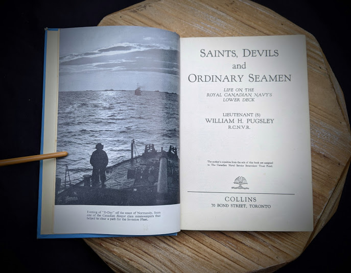 Saints, Devils And Ordinary Seamen: Life On The Royal Canadian Navy’s Lower Deck by William H. Pugsley. Published in 1946 by Collins, Toronto. Second printing.