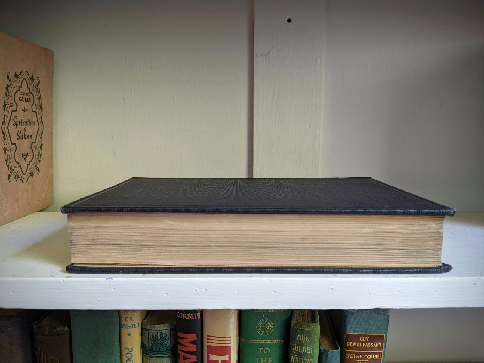 Very nice copy. Mild scuffing on outside panel along front upper spine seam (see up close image for example of this in gallery area). Black panel is unfaded and gold gilt lettering on spine is still vivid. All pages secure and tight. 666 pages including Index in back. Some notes taken on topic by previous owner on roughly about a dozen pages throughout book. Handsome bright copy.