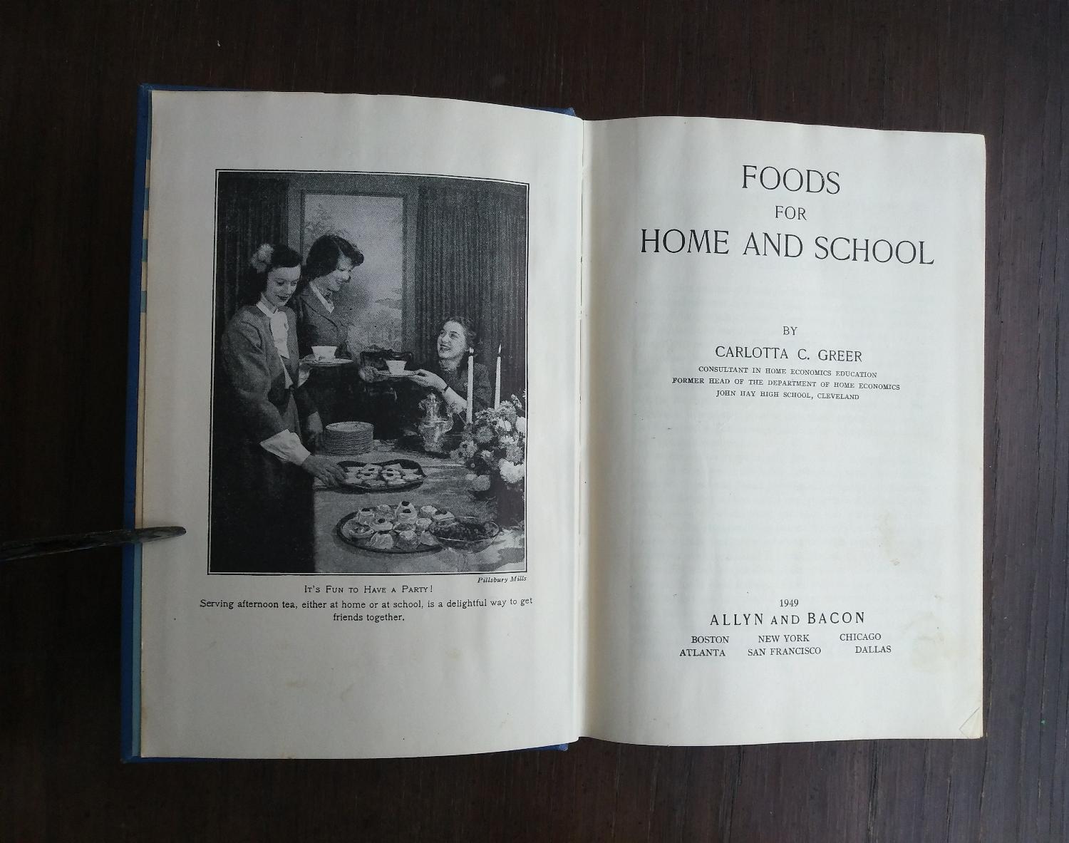 Foods for Home and School, by Carlotta C. Greer. Published in 1949 by Allyn and Bacon.