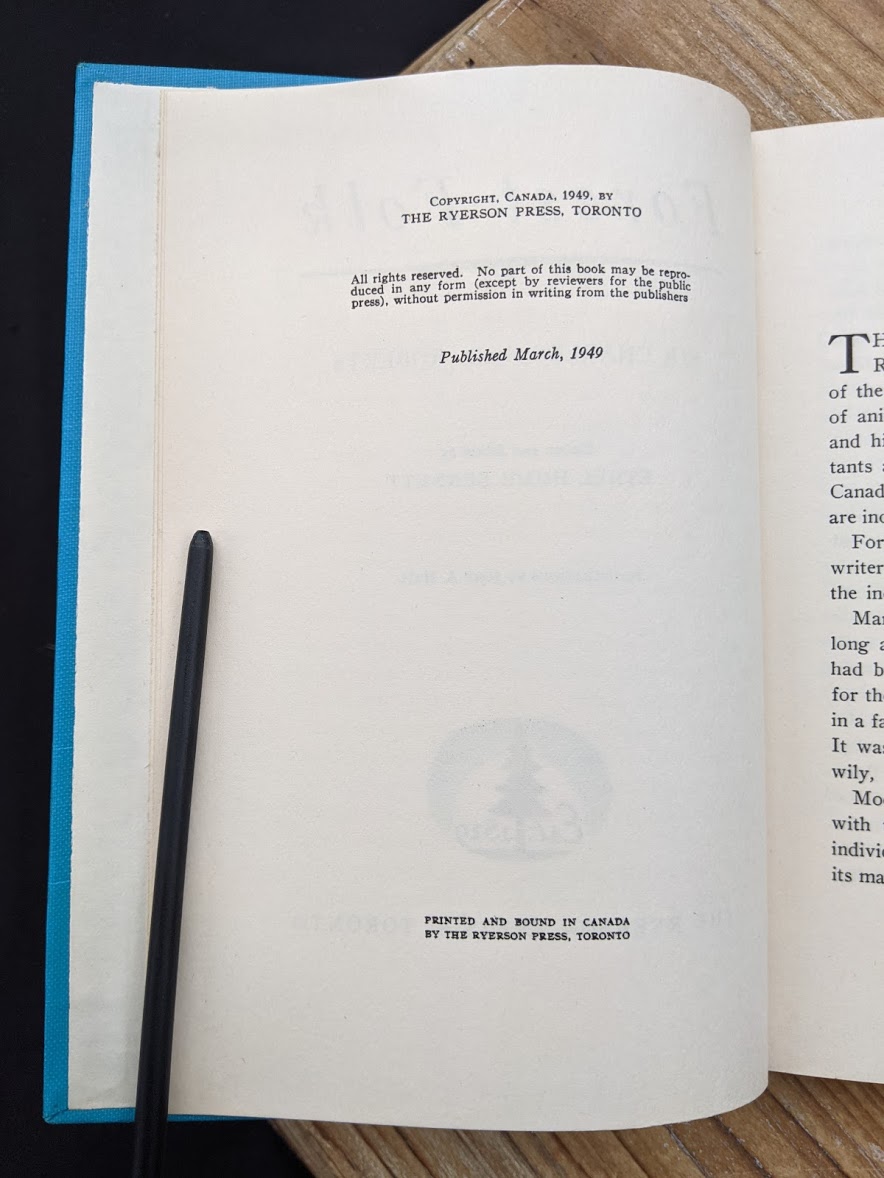 Forest Folk by Sir Charles G.D. Roberts. Published in 1949 by The Ryerson Press – Toronto. First Edition.