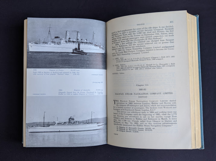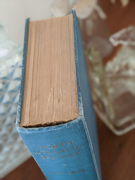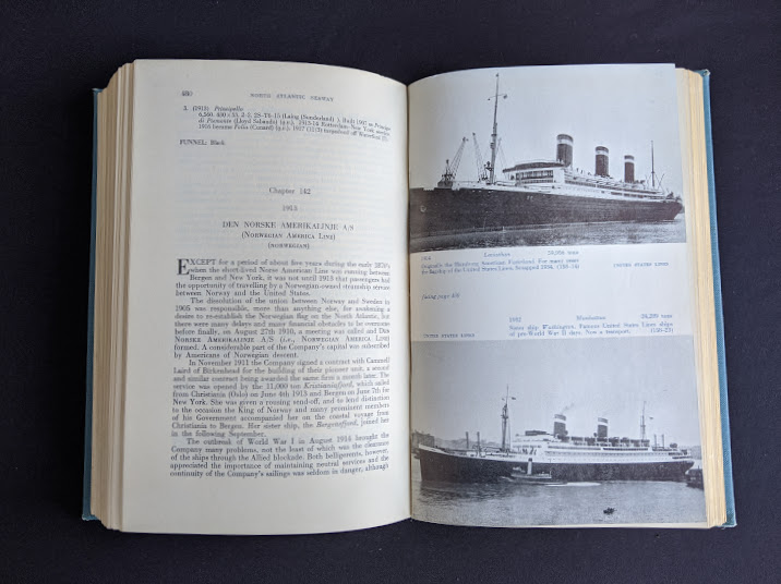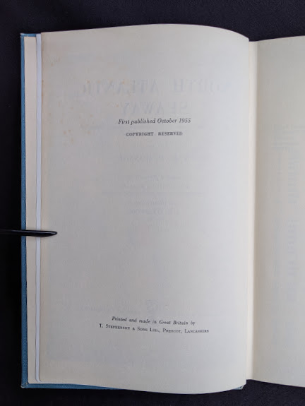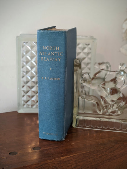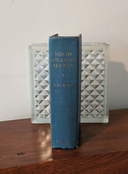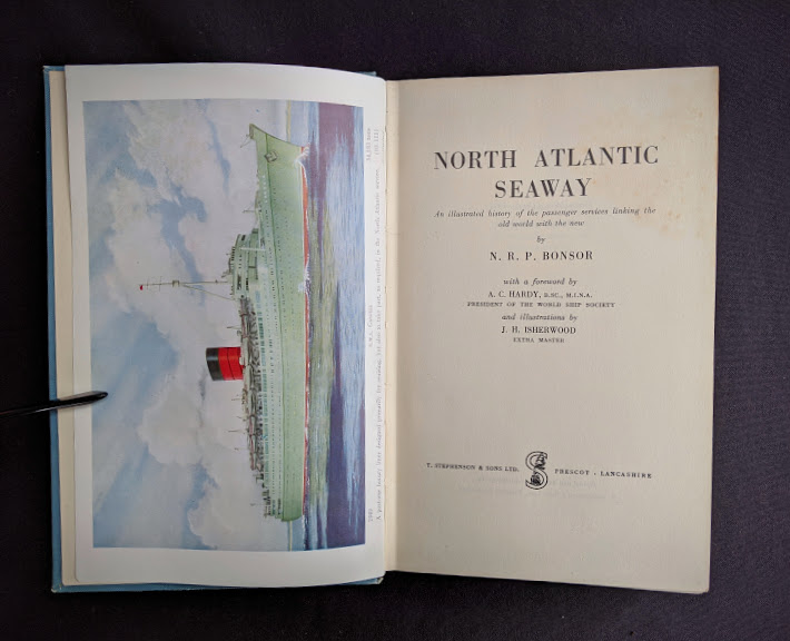 North Atlantic Seaway : An illustrated history of the passenger services linking the old world with the new. By N.R.P. Bonsor. Published in 1955 by T. Stephenson & Sons Ltd, Perscot – Lancashire. First Edition. There is a substantial amount of ephemera found inside.