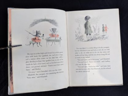 Illustrated with pink, grey and black line drawings by Adrienne Adams. Pictorial endpapers.