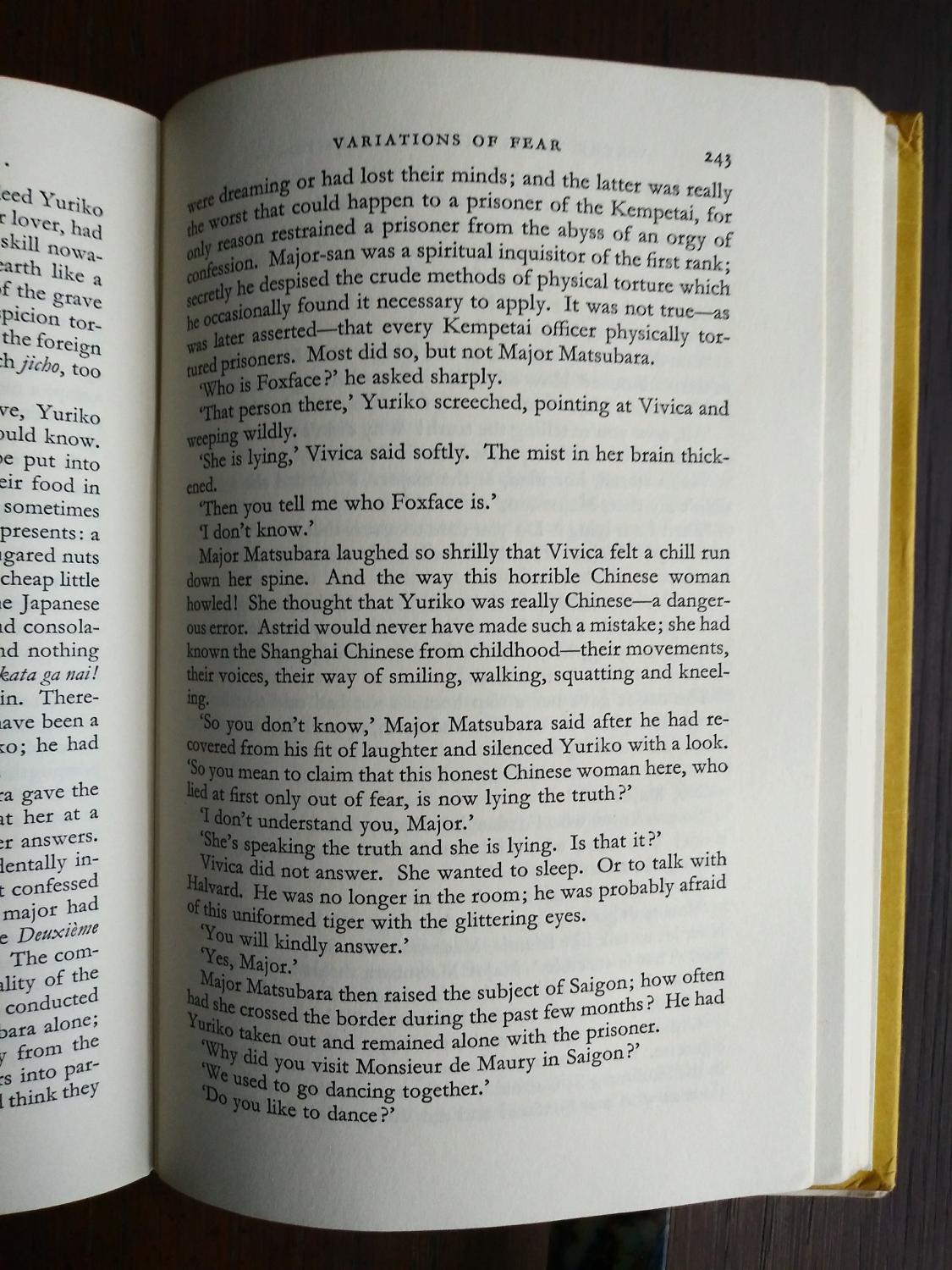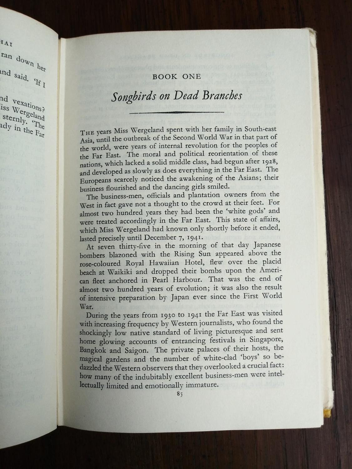 This book is a complex and worldwide tale of political and personal intrigue set before, during, and after World War Two. Taking place primarily in China it tells the story of a Norwegian family and the wide array of friends and enemies they make over the years around the War.