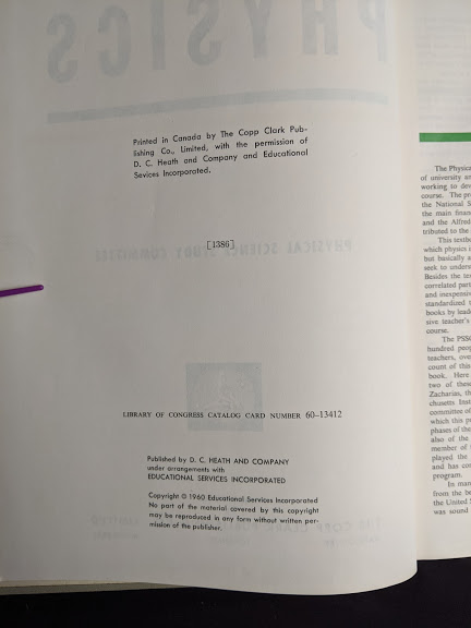 Physics, by The Physical Science Study Committee. Published by D.C. Heath and Company; 1st edition (1960).