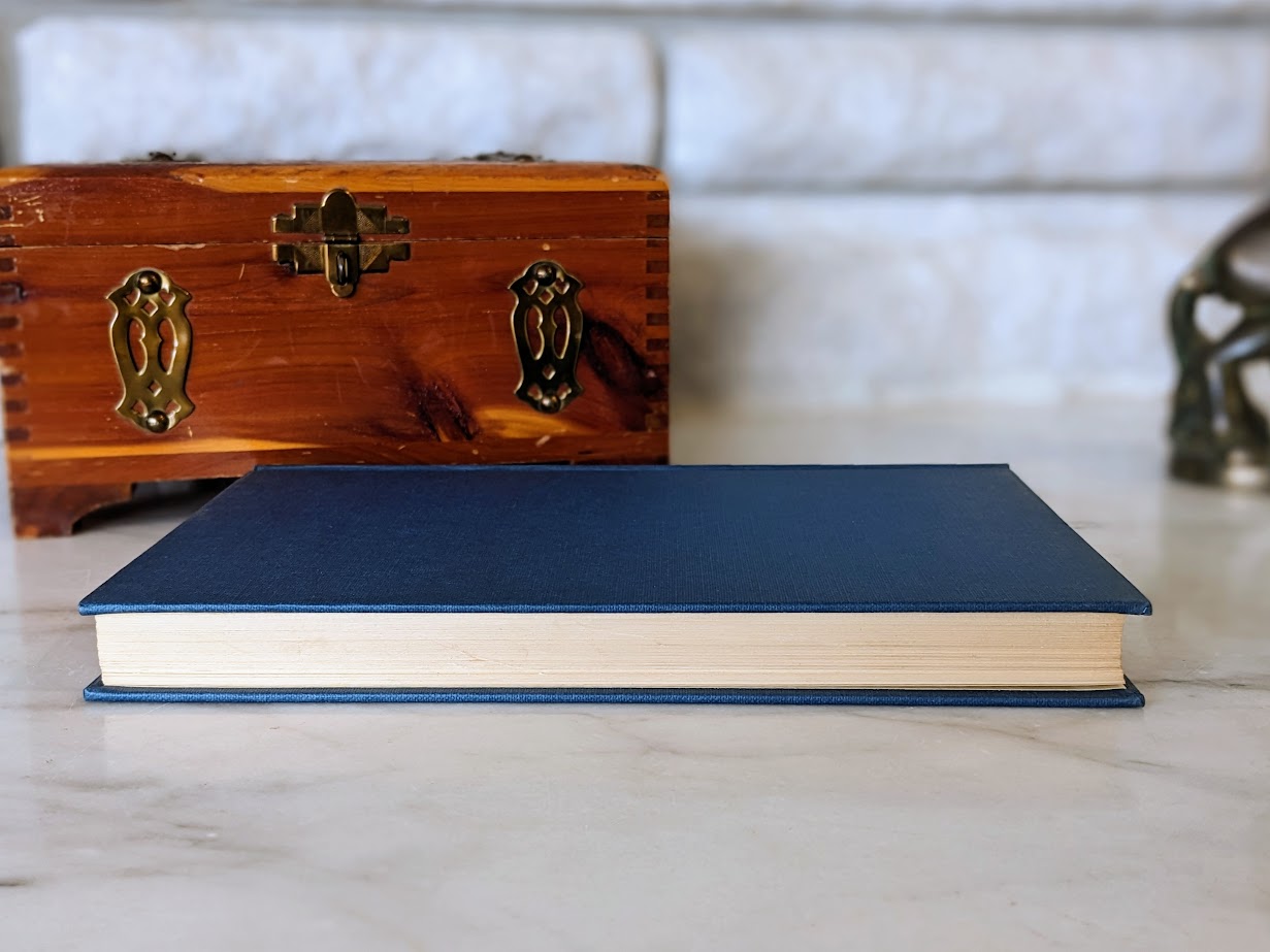 The vibrant blue cloth binding remains bright without any signs of fading.