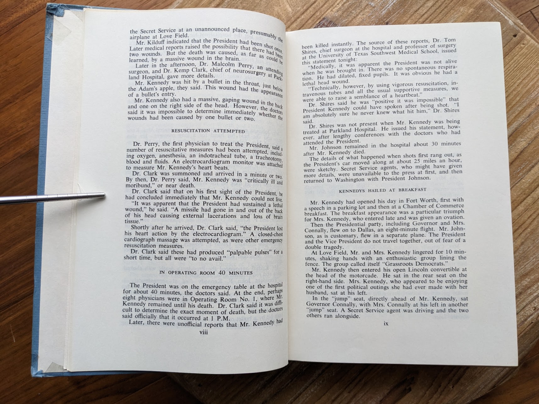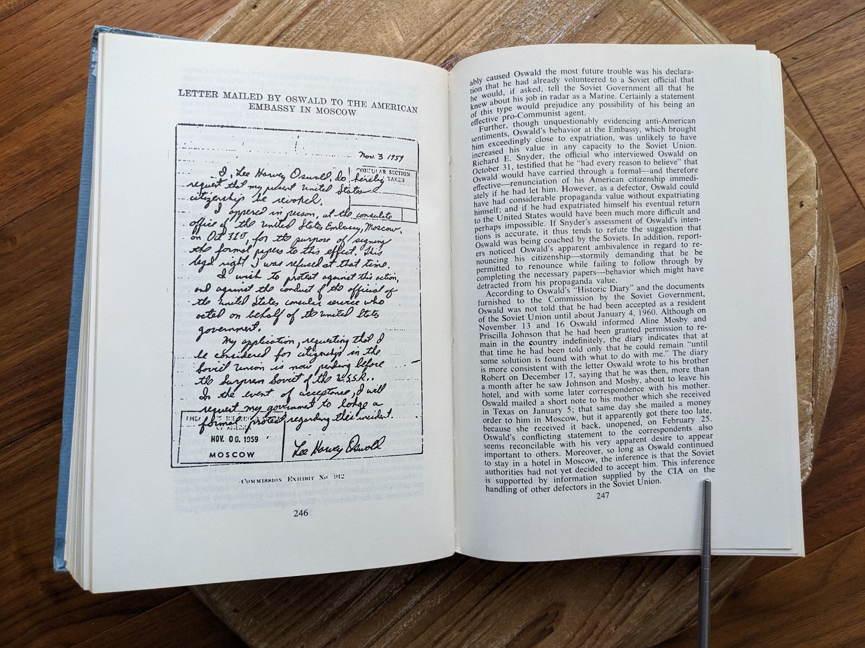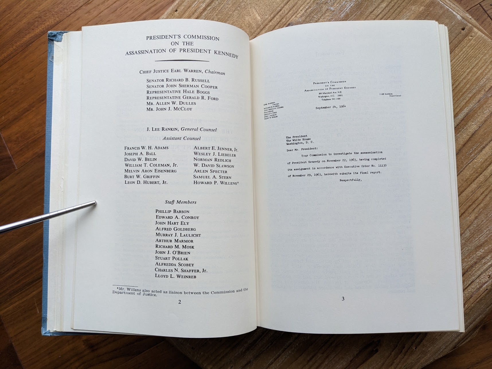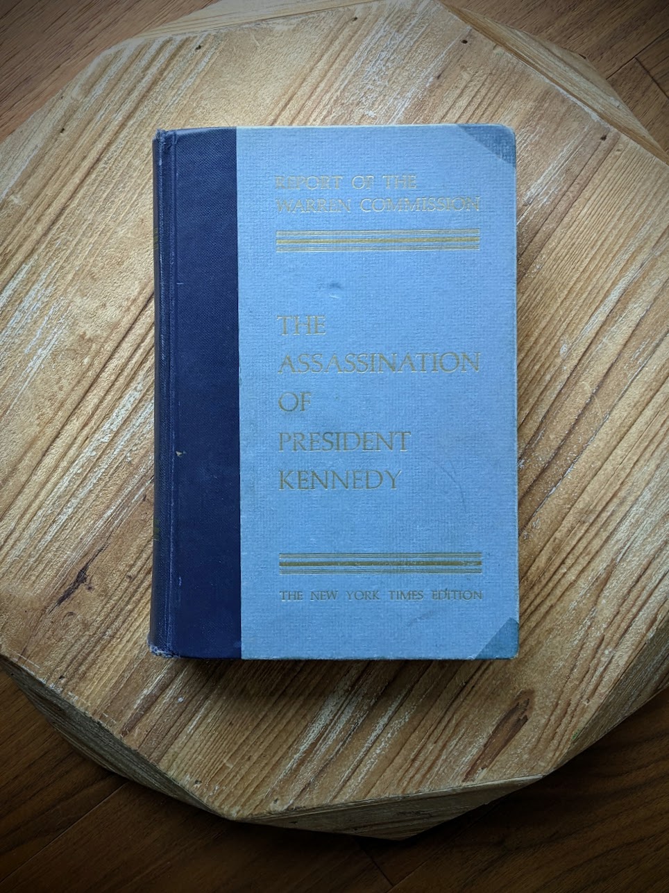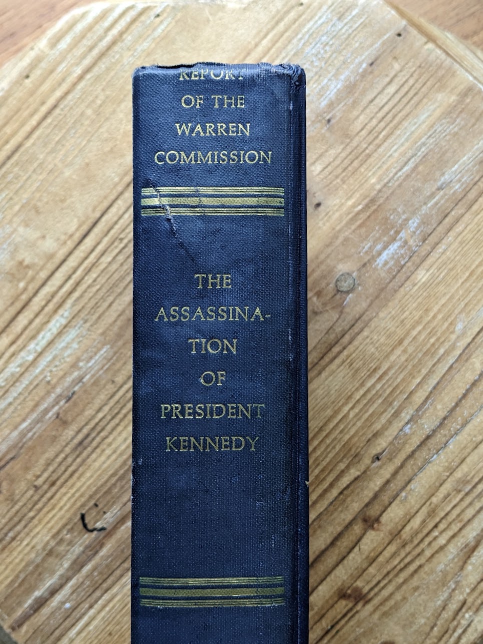REPORT OF THE WARREN COMMISSION: The Assassination of President Kennedy. Copyright by The New York Times, published in 1964 by Bantam Book Inc. This is NOT a book club edition which has similar front and back panels. Ephemera inside (described below with images).