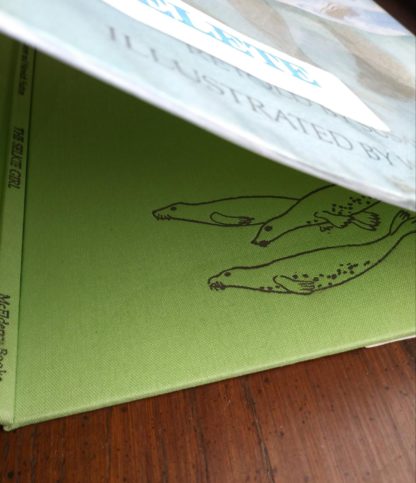 This is an ex-Library copy. Pages are all secure. Black marker on front endpaper and back pastedown page. Inside pages all mark-free. Slight water mark on front cover cloth board. Charming green cloth board has an image of three seals swimming. Condition: Fair. See all pictures posted in the comment thread to get the best idea of condition.