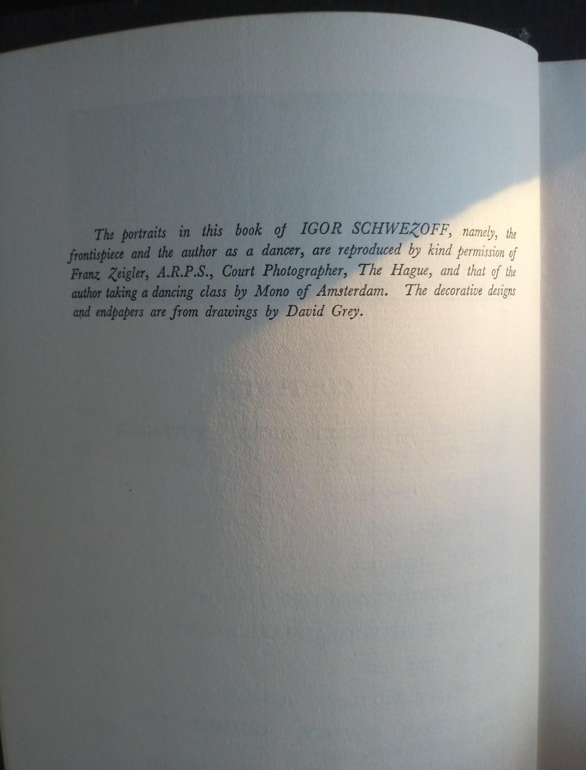An autobiography by the Russian ballet dancer Igor Schwezoff which won a prize from Hodder & Stoughton for the best biography in the English language. Schwezoff was one of the great Russian emigré ballet dancers and choreographers.