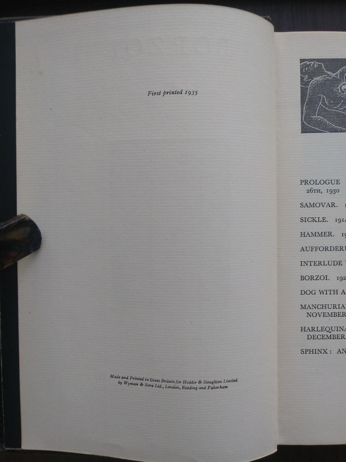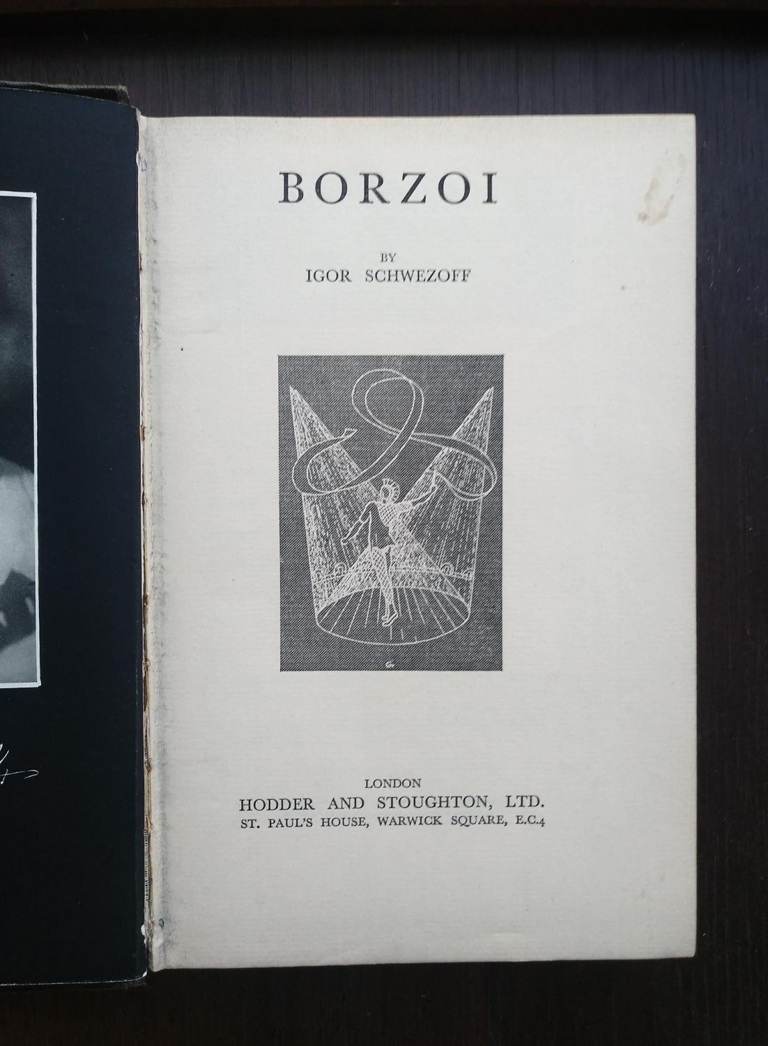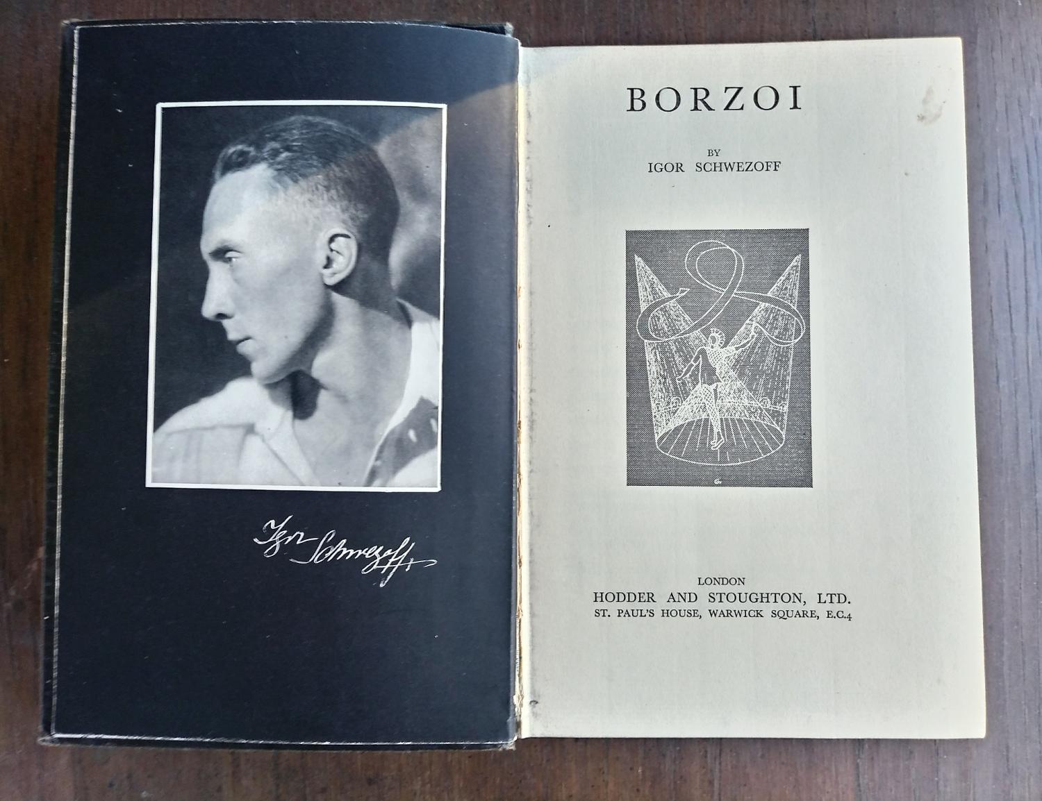 BORZOI by Igor Schwezoff. Published by London, Hodder & Stoughton, 1935. 1st edition; Hardback; No DJ; 441pp with 3 photographs of the Author & 11 decorative illustrations & endpapers by David Grey. There were subsequent printings, but this copy is true first edition.