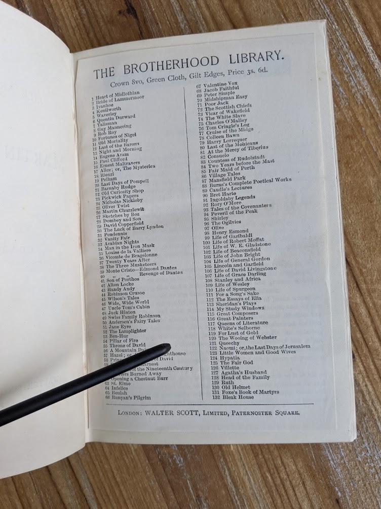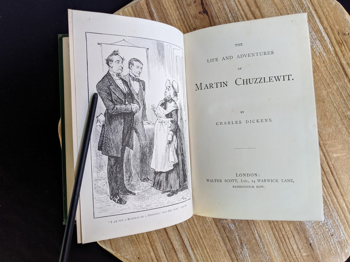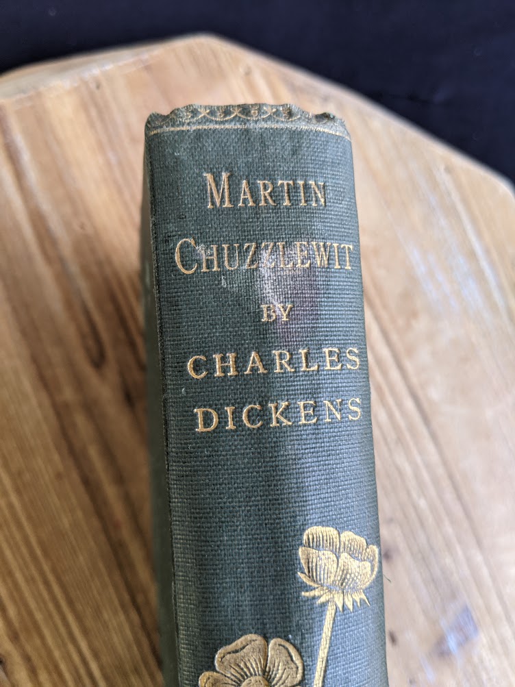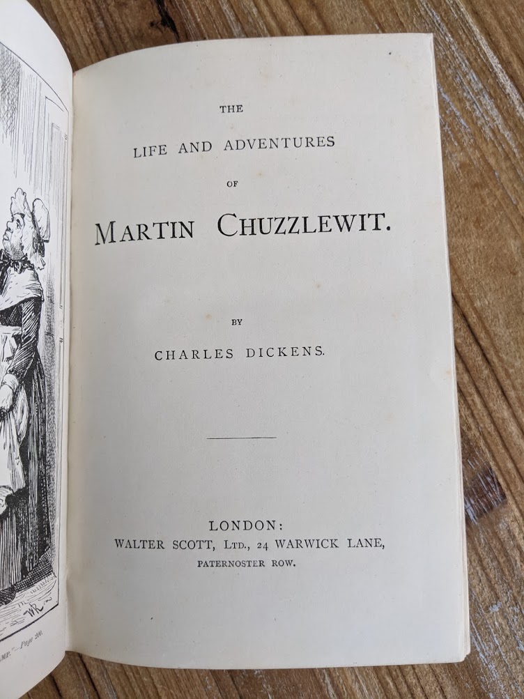 Undated copy of The Life and Adventures of Martin Chuzzlewit by Charles Dickens. Circa 1880s. Published by Walter Scott, Ltd. Uncommon copy. A title in the “The Brotherhood Library”.