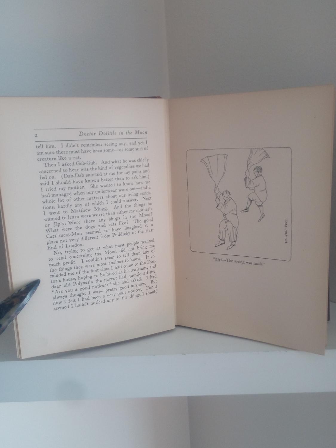 Synopsis from Wiki: Doctor Dolittle in the Moon (originally printed in 1928) was intended to be the last of Hugh Lofting‘s Doctor Dolittle books (volume 8), and differs considerably in tone from its predecessors; the stripped-down narrative does not have room for any of the sub-plots and tales previously present. Instead, there is a growing sense of an event about to happen that is almost spooky in tone. There are some very complex passages for a children’s book; for example, it begins with a meditation about what the writer expects from the reader and vice versa.