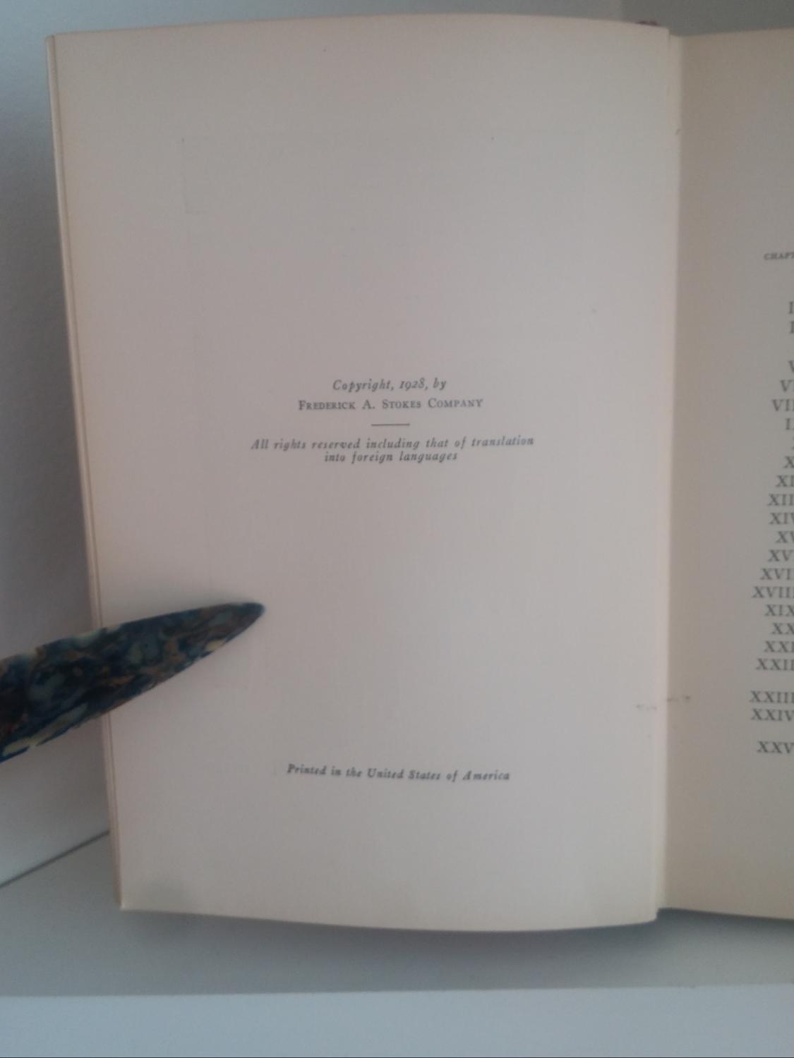 Buyer FYI: There seems to be slight confusion with buyers and some sellers whether or not they are posting or buying a true First Edition first printing of this book. So some buyers are wondering why some First editions are posted around the 50$ range and some are upwards of 300$. That likely depends on if you are buying a 1928 First Edition, first edition, 2nd printing, or a 1928 First Edition, first printing. There are a fair amount of people selling 1928 First Editions of this book and pronouncing them as such which would be true but in many cases, the buyer doesn’t realize it is a First edition, thus. because the seller is not posting the copyright page which indicates which First Edition you have. The second printing of this book came out within the same year just and some buyers are thinking they have First Edition & First printing when that is not always the case. It would state under the 1928 copyright that it was reprinted later that year, on the copyright page so if you are purchasing this book make sure you get a picture of that page to be certain what copy you are buying.