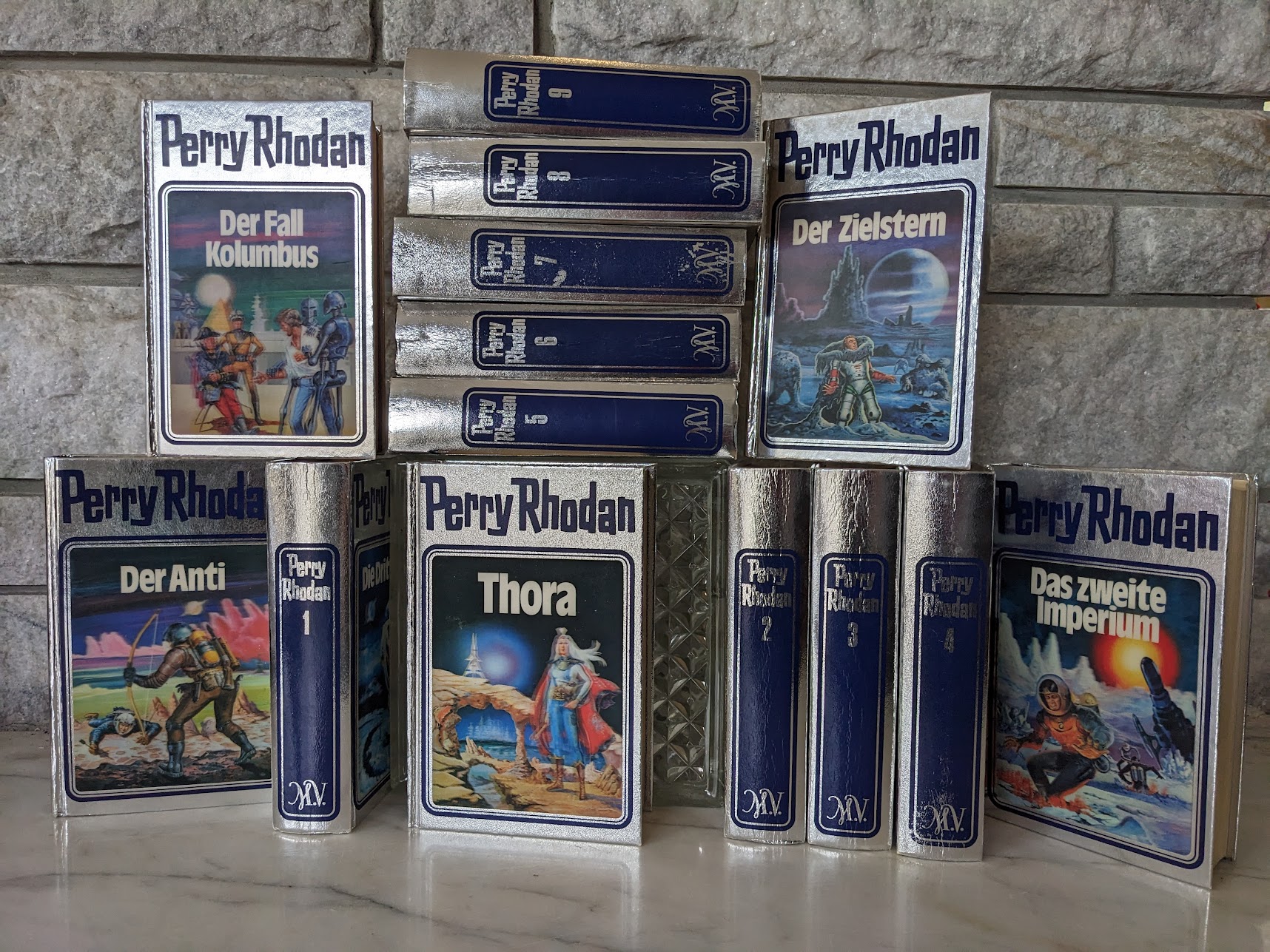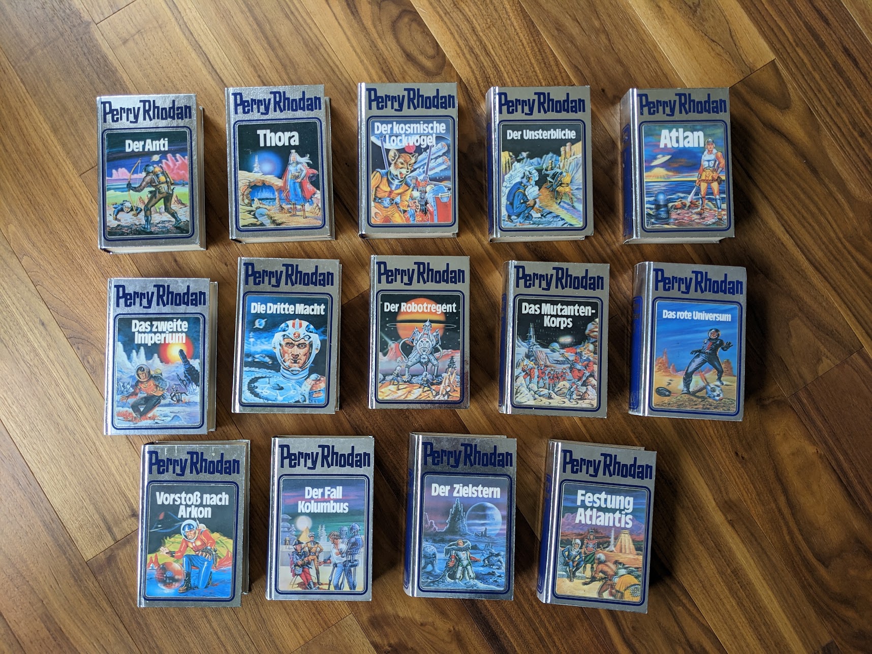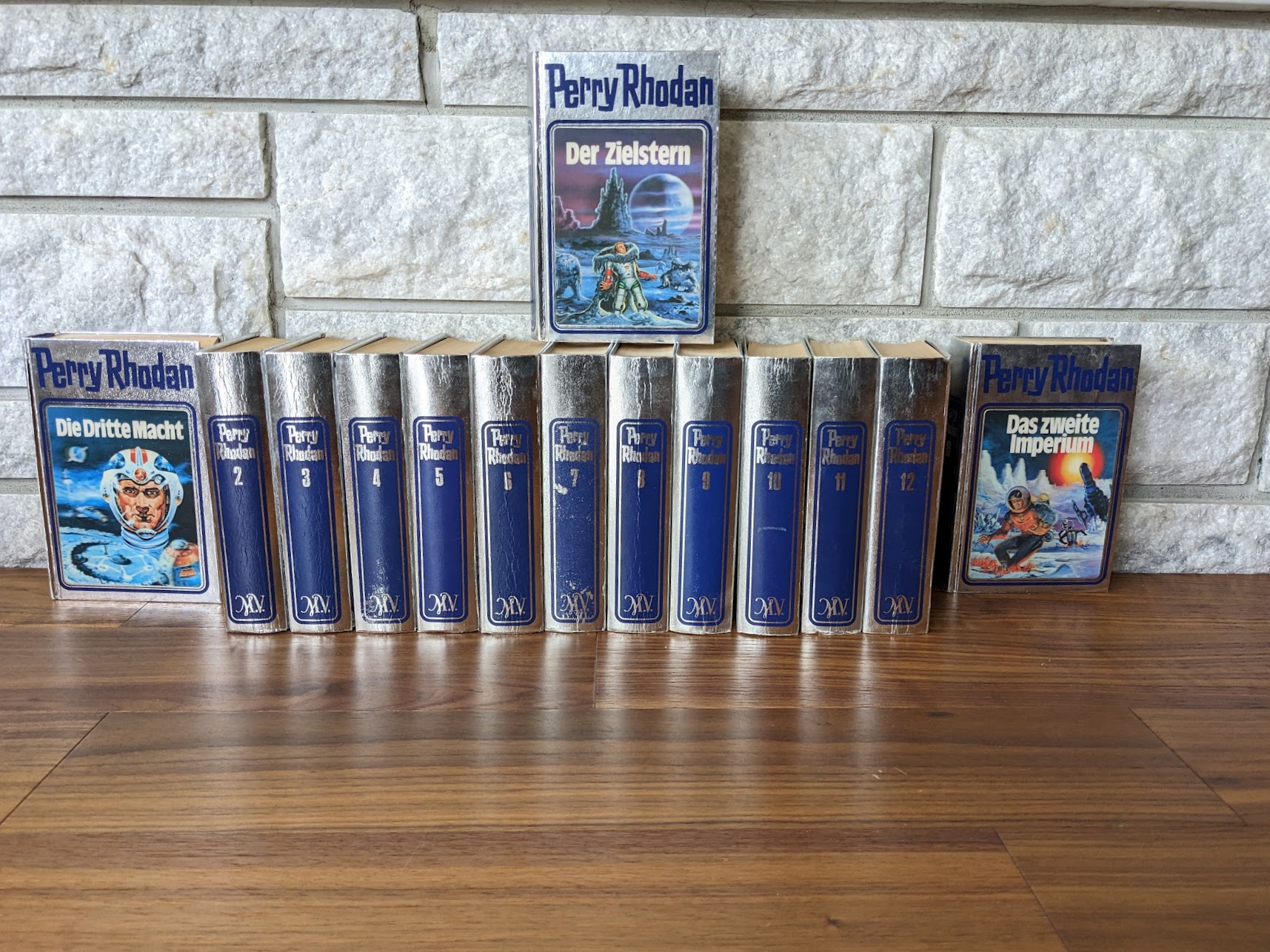 Perry Rhodan Book Lot. Volumes 1 through 13 and 19 (14 in total). Printed in Germany between 1979 and 1984 by Verlagsunion Erich Pabel-Arthur Moewig KG, Rastatt