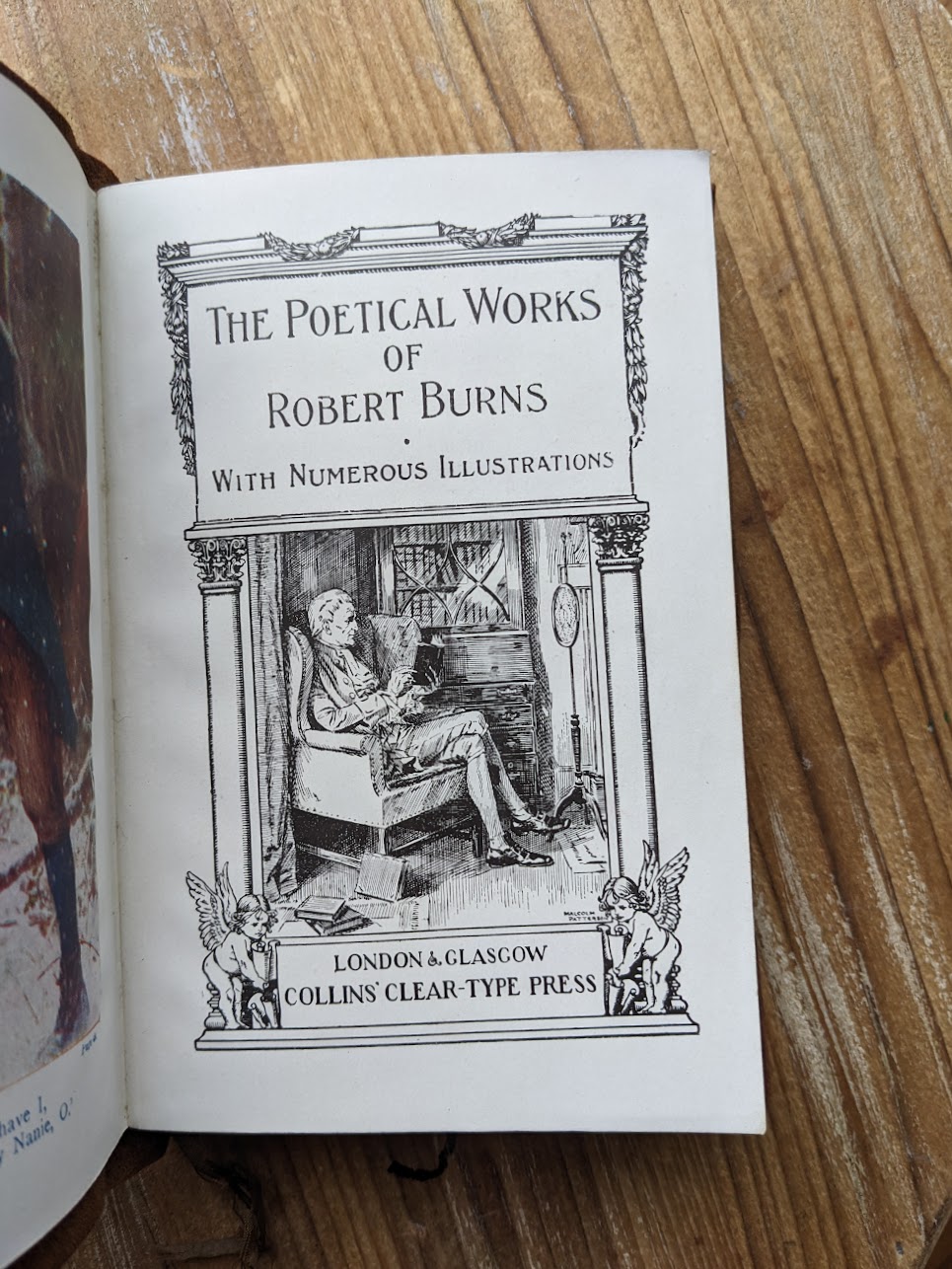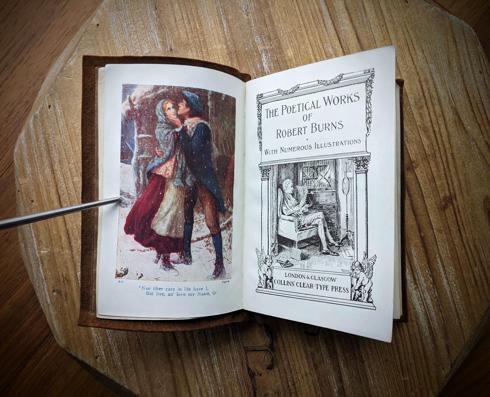 The Poetical Works of Robert Burns,  with Numerous Illustrations.   Published by Collins Clear-Type Press, London. [n.d.] Not dated.  Scarce copy.  Comes with Ephemera inside.