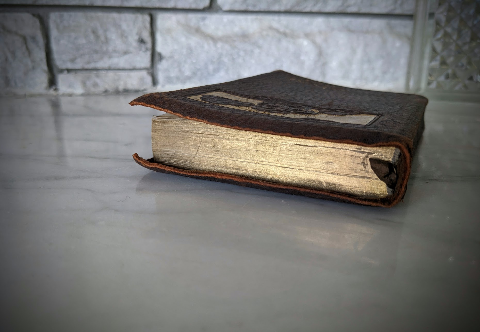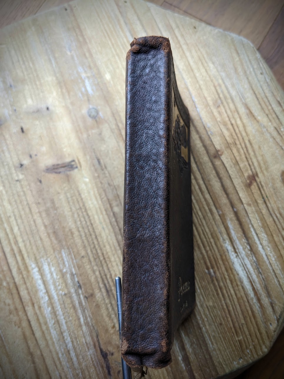 Ephemera up close found inside a scarce undated copy of The Poetical Works of Robert Burns - Limp Vellum calf leather