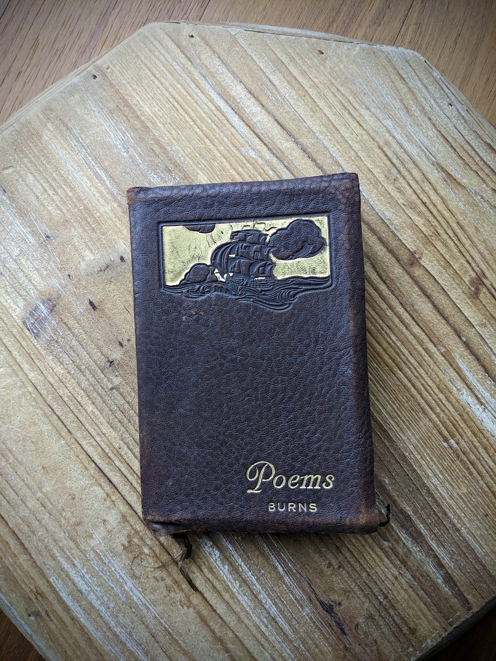 Scarce undated copy of The Poetical Works of Robert Burns – Ephemera inside – Limp Vellum calf leather – SOLD