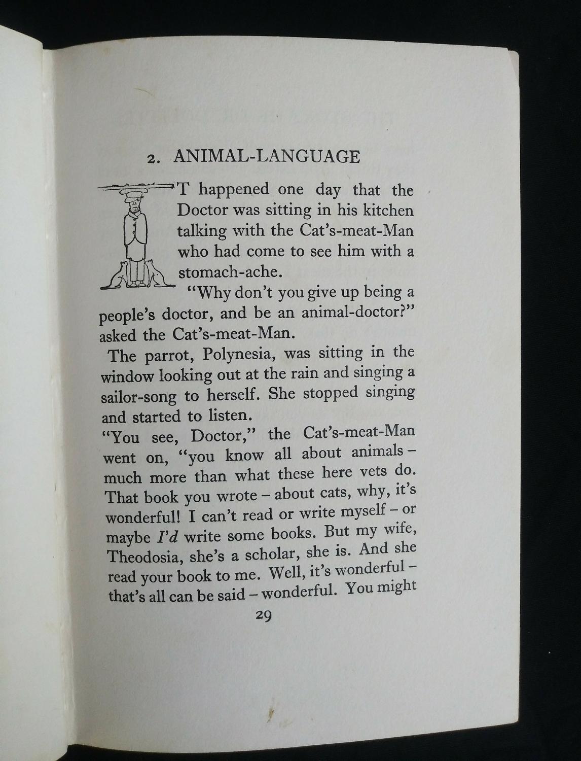 The Story of Doctor Dolittle, Being the History of His Peculiar Life at Home and Astonishing Adventures in Foreign Parts. Originally published in 1920. Written and illustrated by the British author Hugh Lofting, this one is the first of his Doctor Dolittle books, a series of children’s novels about a man who learns to talk to animals and becomes their champion around the world. It was one of the novels in the series which was adapted into the film Doctor Dolittle.